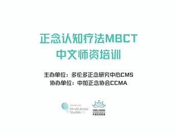 自2022年,中加正念协会与多伦多正念研究中心(CMS) 联合推出了首期正念认知疗法MBCT中文师资课程。 该课程由多伦多正念研究中心主办,中加正念协会协办,每年招收一期学员,课程历时约一年。完成本阶段师资课程的学员将成为正念认知疗法受训师资,具备带领正念认知疗法MBCT八周课资质,并可凭借该证书继续后续阶段督导学习。